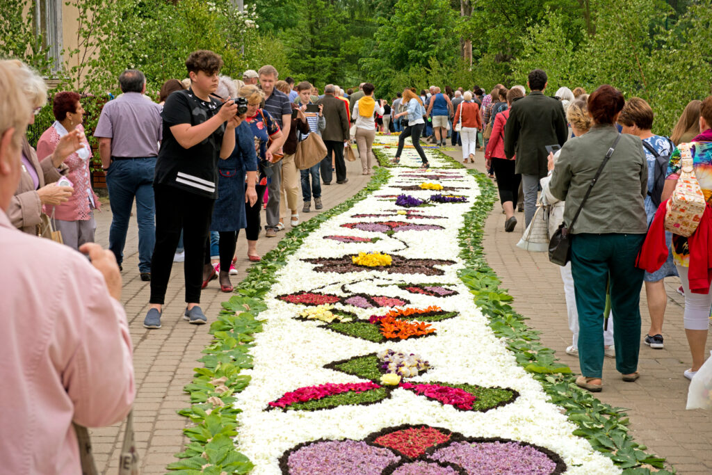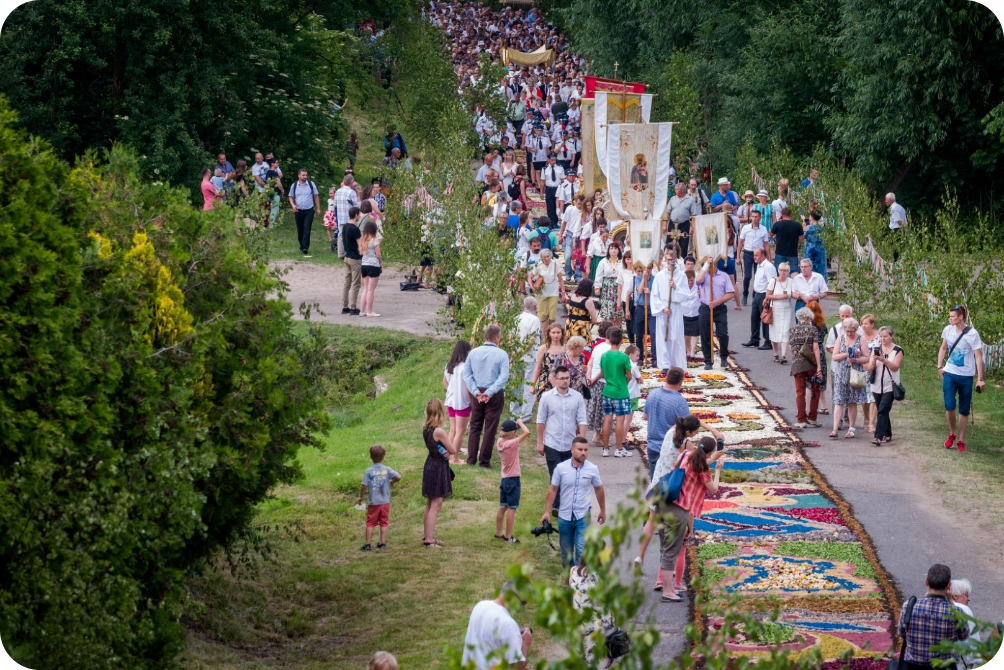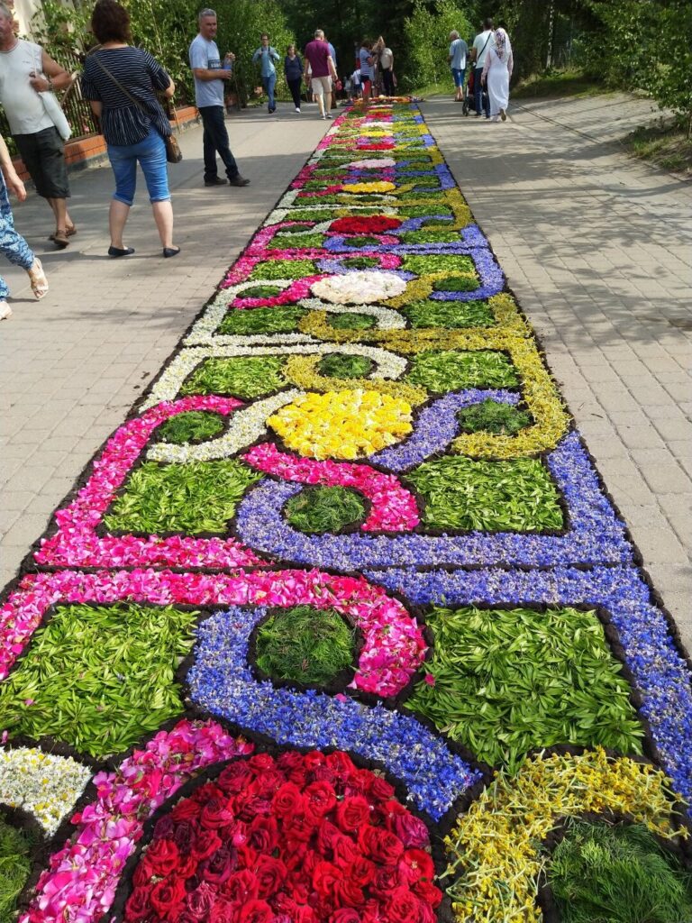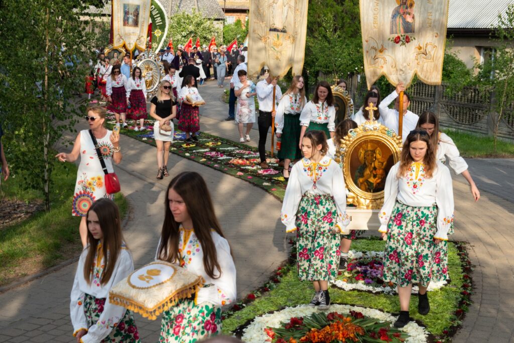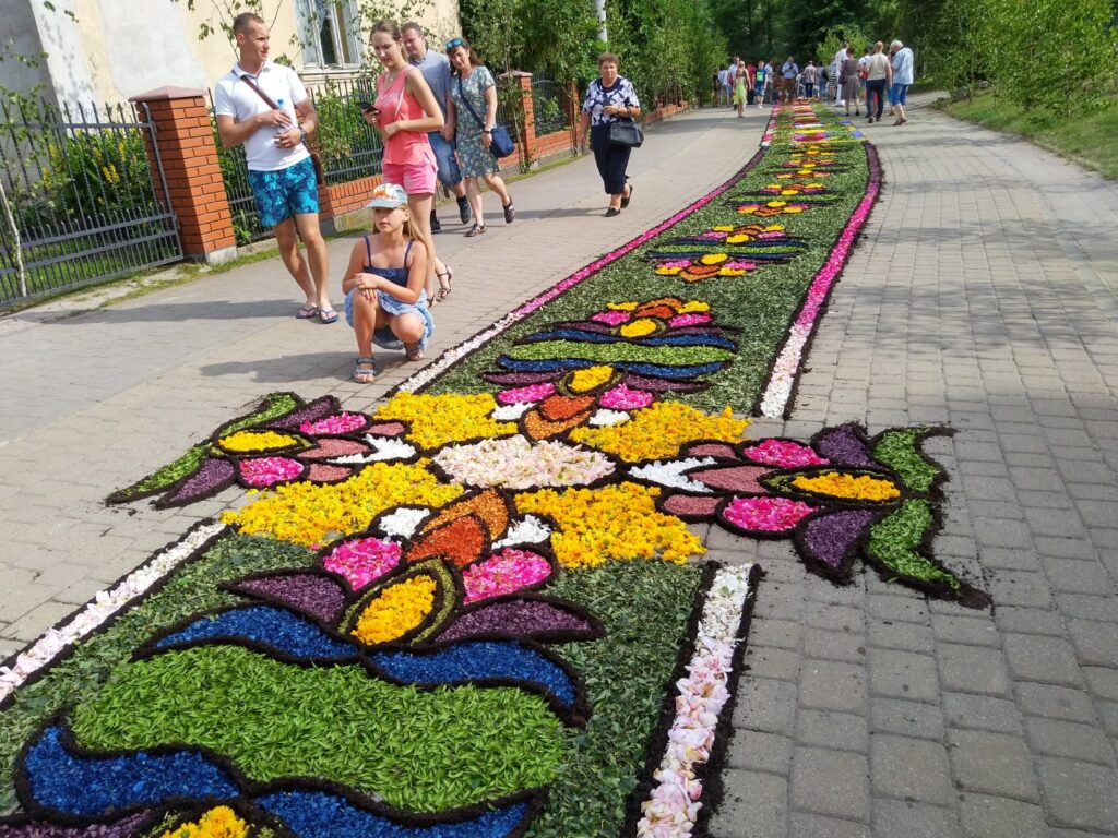 - Obserwacja procesu układania dywanów (najlepiej w godzinach południowych w dzień Bożego Ciała)
